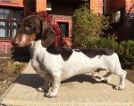 миниатюрной гладкошерстной таксы, окраса чёрно тигровый пайболд (кобель без брака) и рыжий пайболд (сука без брака)